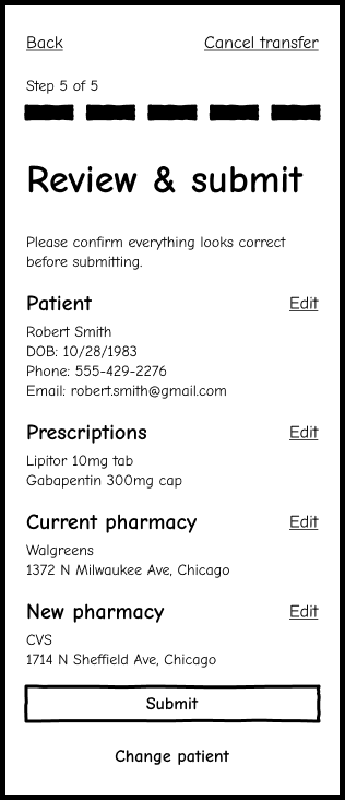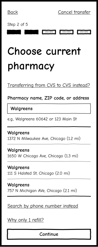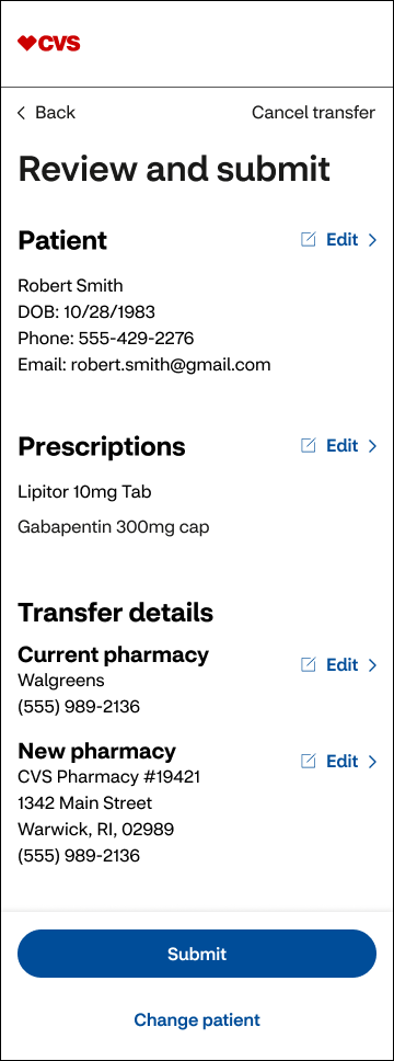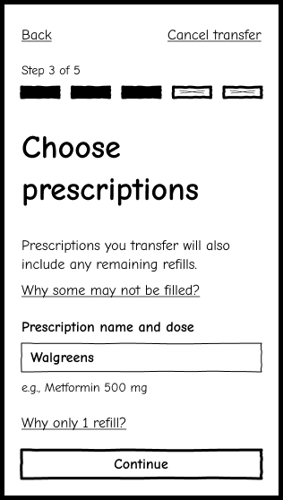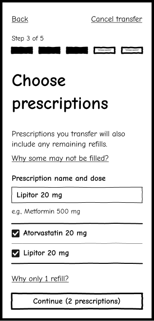 Used real user insights to explore how prescription transfers could feel clearer, calmer, and easier to complete.